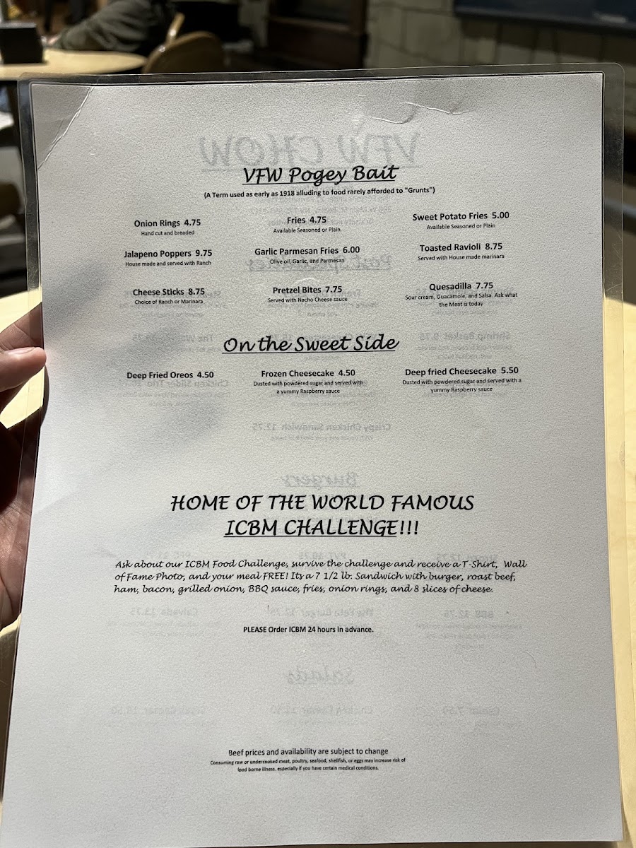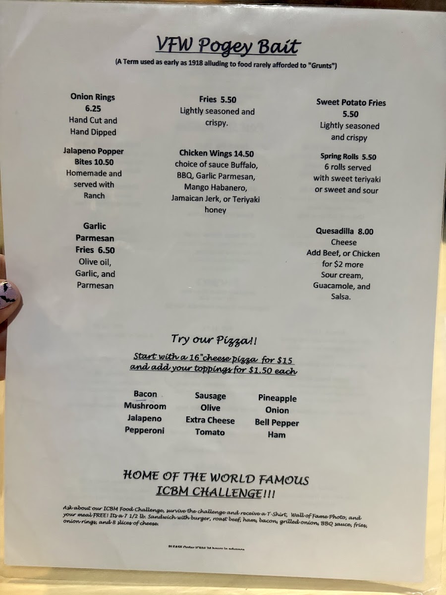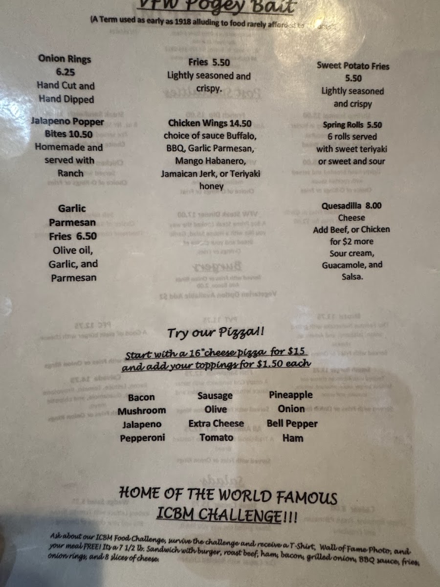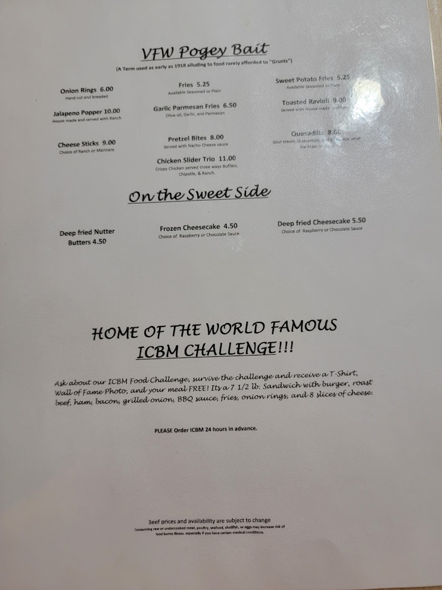 From a reviewer’s perspective, the menu at Vfw Beatty Post offers a straightforward selection of comfort food classics that focus on hearty portions and familiar flavors. The Post Specialties section features satisfying options like Shrimp Scampi, Shrimp Basket, French Dip, Vfw Cheesesteak, and Steak Sandwich, which cater to guests looking for filling, traditional favorites. The burger lineup includes the Strozzi, Smash Burger, Pvt Fish Sandwich, and All American BLT, giving diners a mix of classic American sandwich choices. For lighter options, the salad selection includes Caesar, Steak Caesar, Chicken Caesar, and Wedge Salad, providing simple but reliable alternatives. On the side, guests can choose from shareable snacks and sides such as Onion Rings, Jalapeno Popper Bites, Fries, Chicken Wings, and Sweet Potato Fries, which round out the menu nicely. Overall, the menu focuses on casual, satisfying dishes rather than an extensive or gourmet selection, making it a comfortable spot for classic bar-style meals and familiar favorites.